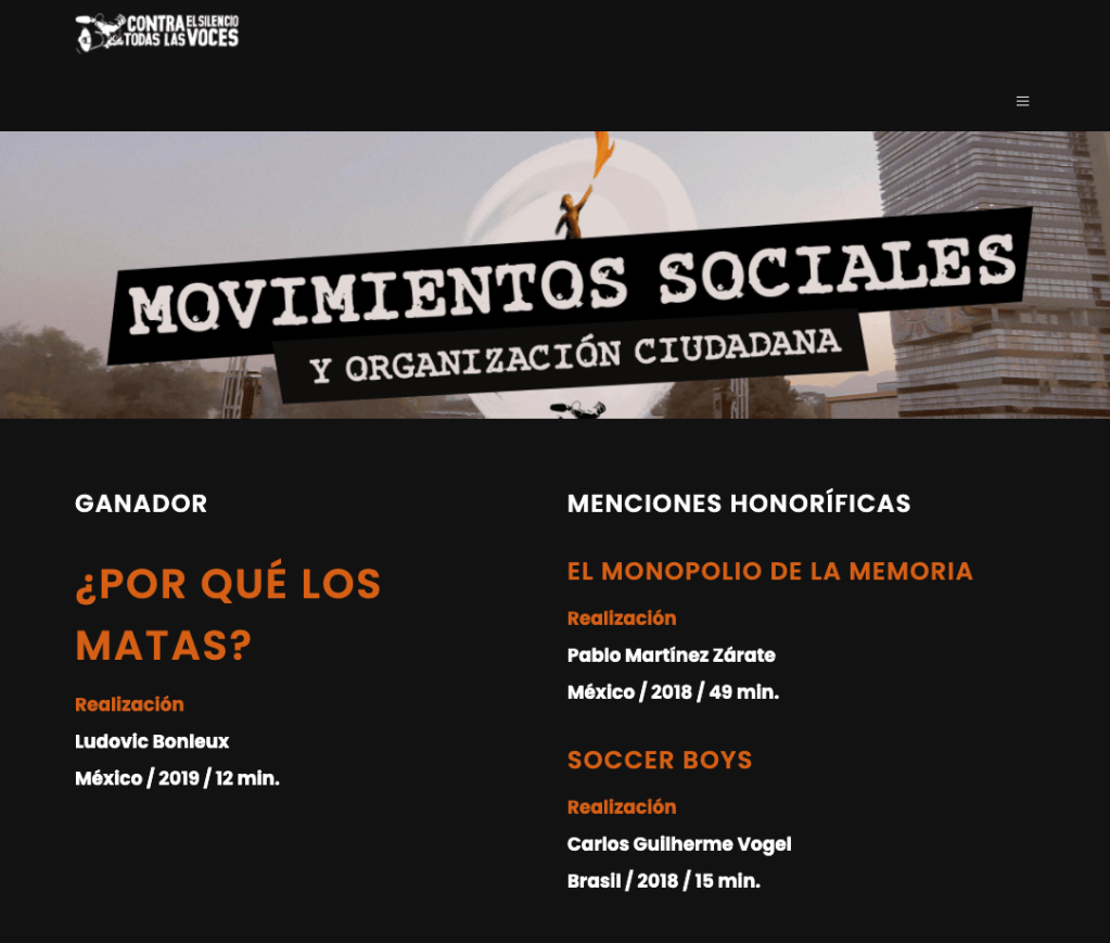 Agradecemos a la organización de Contra el silencio todas las voces por permitirnos ser parte de la edición 2020, inundar las transmisiones de televisión pública con imágenes de la memoria (y sus reversos), y al jurado por reconocer el esfuerzo de IberoDocsLab con una Mención Honorífica.