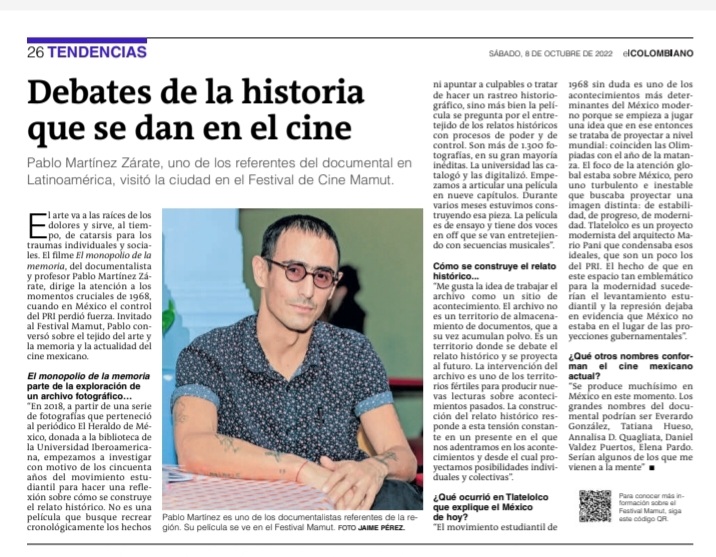 Visitamos Medellín, Colombia, para dar un taller y compartir varias de nuestras producciones en el Festival Mamut. No acompañó la exalumna de la Maestría en Cine, Fanny Aparicio, quien participó como asistente de fotografía en la película La memoria se filtró por una grieta. Un verdadero placer compartir con la comunidad colombiana y aprender juntes. Abajo una entrevista que realizó el coordinador de IberoDocsLab con El Colombiano. ¡Gracias, Mamut!